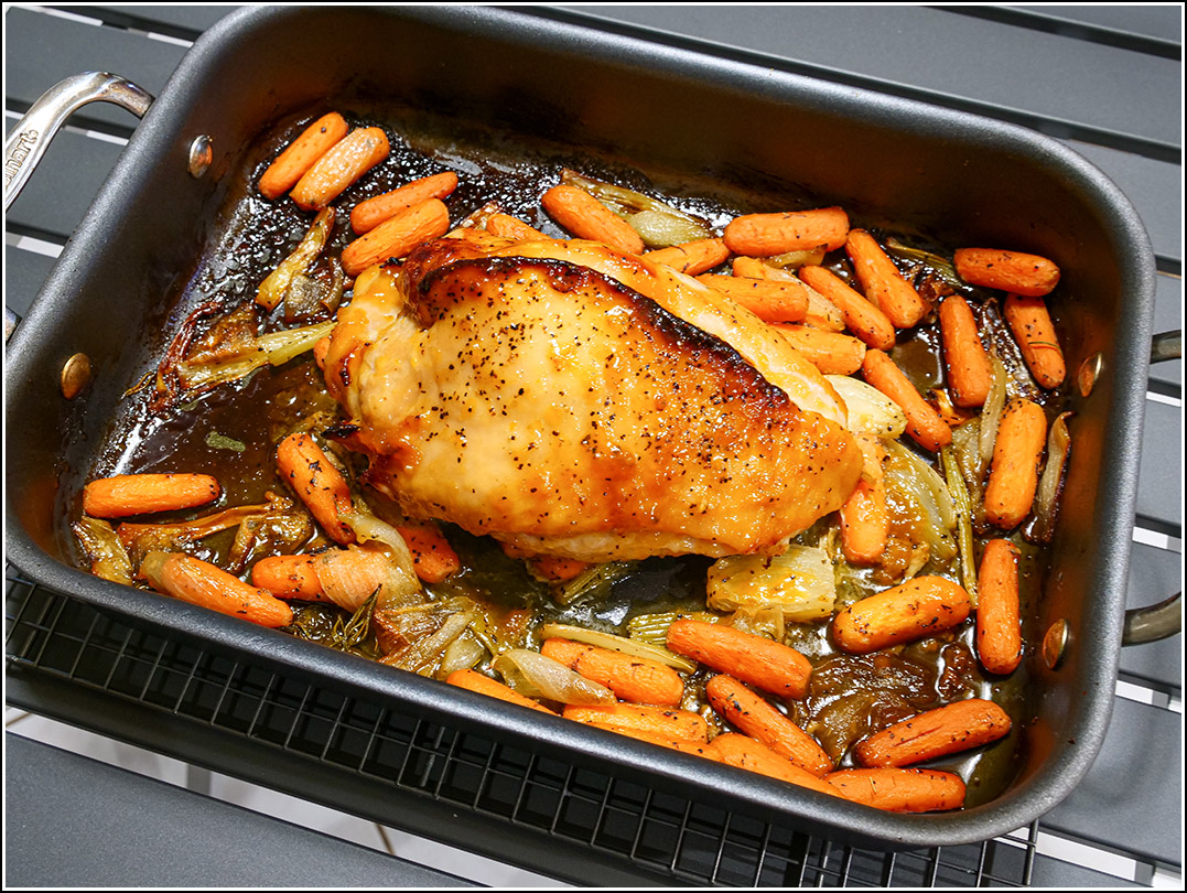- Roast breast 30 minutes, rotate pan, reduce temperature to 325°F, then brust breast with glaze. Roast breast until a thermometer inserted into the thickest part registers 165°F, about 1½ hours more, brushing with glaze every 30 minutes until all glaze is used.